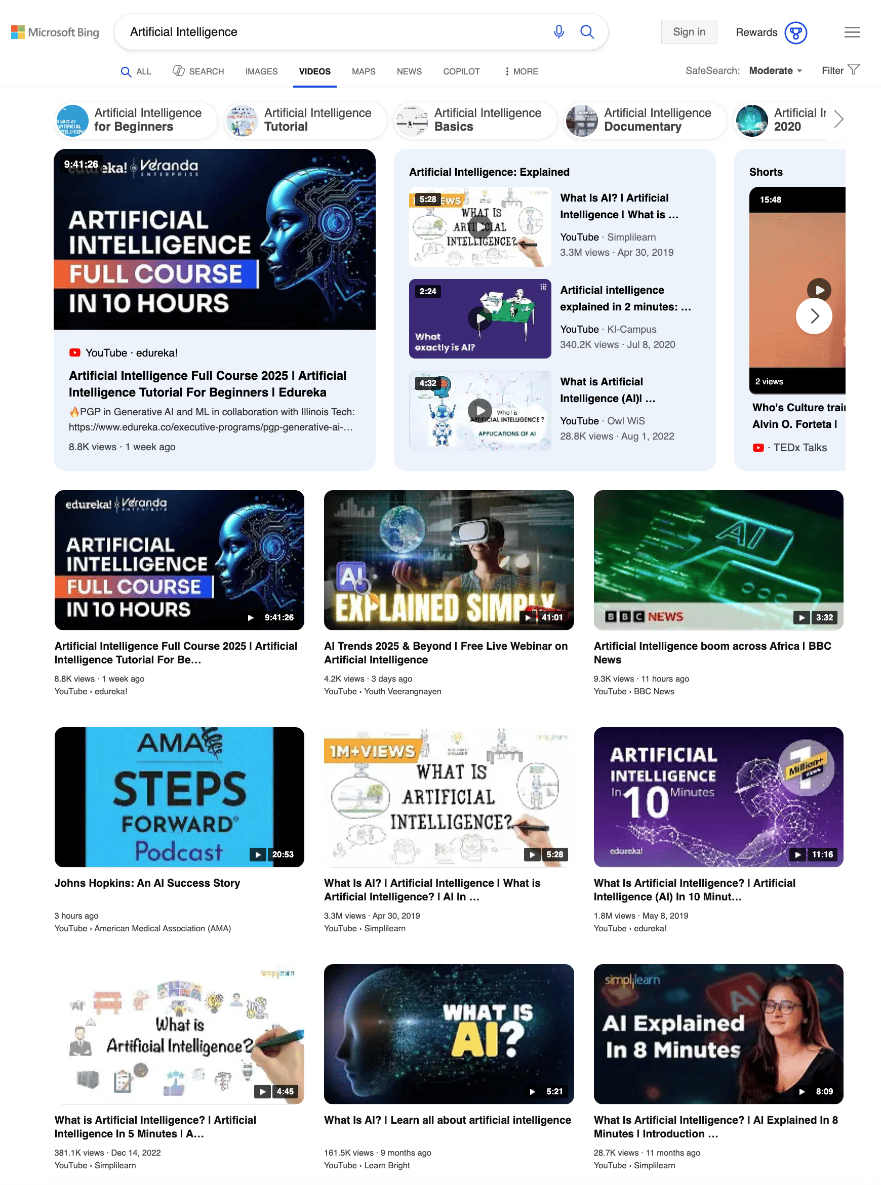 The Bing Videos API returns video search results from Bing, with structured data for videos, ads, and recommendations. It provides: